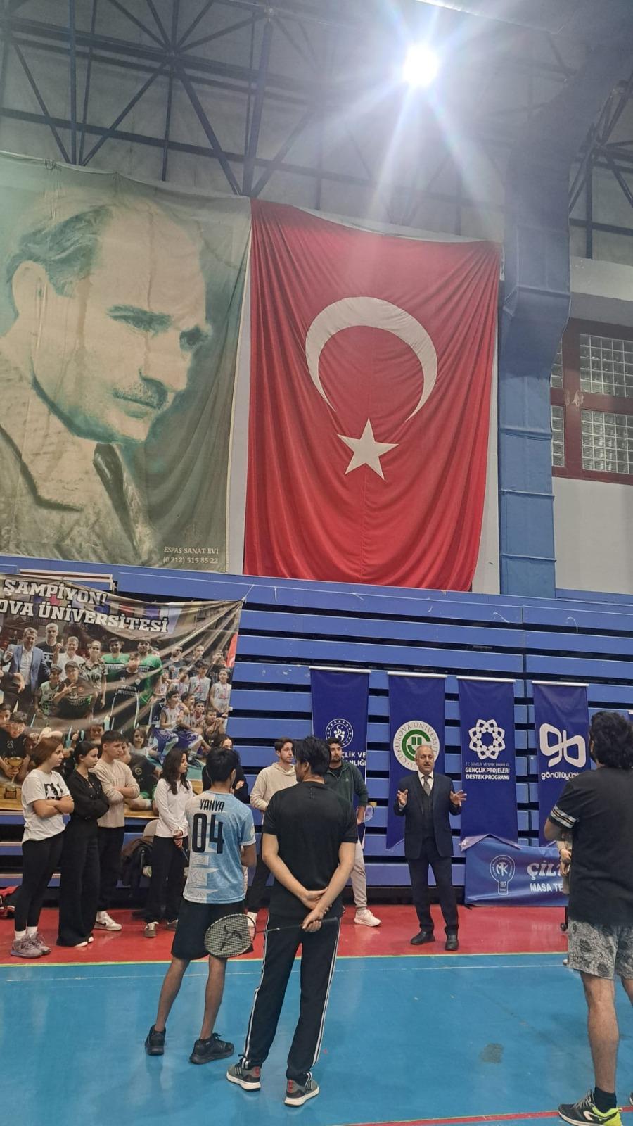 Çukurova Üniversitesi Spor Bilimleri Fakültesi Beden Eğitimi ve Spor Öğretmenliği Bölümü tarafından, Gençlik ve Spor Bakanlığı’nın Gönüllüyüz Biz proje desteğiyle hayata geçirilen “Raket Kardeşliği – Sporla Kültürleri Buluşturuyoruz” projesi kapsamında başlatılan badminton etkinliğimiz başarıyla yürütülmektedir. Etkinliğe Adana Gençlik ve Spor İl Müdürlüğü Eğitim, Sosyal ve Kültürel Faaliyetler Birimi Şube Müdürü Sayın Ekrem Tok ile proje kontrolörümüz Sayın Melis Özcan katılım sağlamış; öğrencilerimize Gençlik ve Spor Bakanlığı’nın yürüttüğü projeler hakkında bilgilendirmelerde bulunarak gençlerimizde farkındalık oluşmasına katkı sunmuşlardır. Projemizin kabul aşamasından başlayarak planlama, hazırlık ve uygulama sürecine kadar her aşamada verdikleri destek ve rehberlik için Sayın Tok ve Sayın Özcan’a teşekkür ederiz, kıymetli katkıları projemizin başarısında önemli bir rol oynamaktadır.